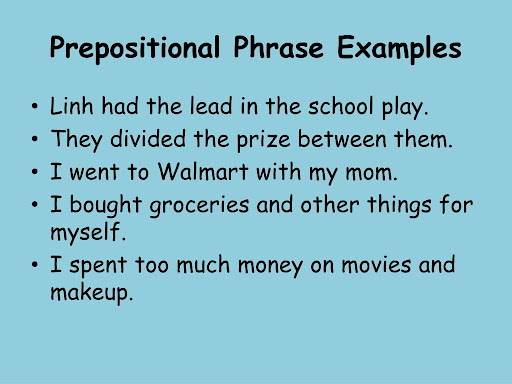 Phrases in english grammar - comprehensive grammar checker ... from cartes-trop.fun A prepositional phrase is a group of words that lacks either a verb or a subject, and that functions as a unified part of speech. Discover how to use prepositional phrases with examples for the prepositions at, by, for, from, under, and without for english learners, esl and efl. A prepositional phrase is a group of words that begins with a preposition. The salesperson sells from door to door. When a prepositional phrase acts upon a noun, we say it is behaving adjectivally because adjectives modify nouns. A prepositional phrase is a collection of words made up of a preposition followed by a noun, noun phrase, or noun clause which. I was aboard the titanic but. Choose from 500 different sets of flashcards about prepositional phrase examples on quizlet.